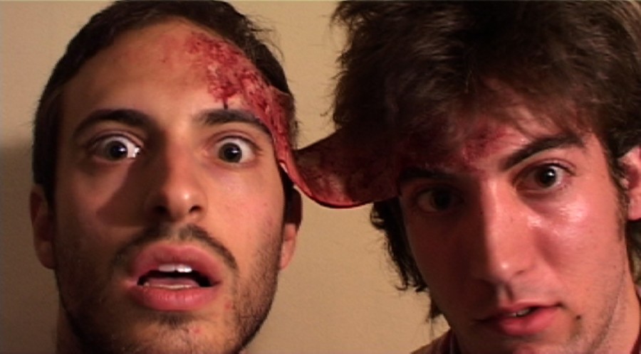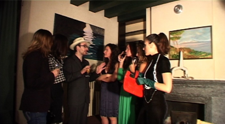 Che dire? E' il mio film maledetto! Il mio kolossal pieno di ambizioni sperimentali, il punto di arrivo della prima parte della mia filmografia.. Per la prima volta mi sono catapultato in un grande grandissimo set: una grande villa come location, dove per una settimana ho vissuto insieme alla troupe.. Più di venti attori professionisti provenienti da molte scuole di teatro e cinema italiane, assistenti alla regia, segretarie di edizione, adetti alle luci, fonico, truccatrici, addetti agli effetti speciali, costumiste, addetti al catering, ecc.. In più per la prima volta una partitura musicale creata apposta per il mio film, con le musiche in sincronia con i movimenti del film.. Il tutto per un film molto lungo: ben 108 delirantissimi minuti! ..Fontane di Sangue è un film pieno di elementi concettuali e tematici che avevo già sviluppato, ma che si venivano a mescolare tutti insieme: la comicità 'a sberleffo', gli eccessi caricaturali, le atmosfere thriller, gli zombi, il sangue schizzato, spalmato, versato, inglobato, bevuto, scene romantiche e 'pure', sperimentazioni 'comico-sintattiche', le citazioni, le persone isolate e chiuse in trappola, un sottile erotismo.. Insomma ho potuto dare libero sfogo alla mia fantasia, mettendo tutto insieme! ..Non senza una serie infinita di problemi con il cast, che non capiva bene dove il tutto sarebbe andato a parare.. Una sera addirittura sentii che gran parte degli attori si erano riuniti per cospirare contro di me: minacciavano che il giorno dopo se ne sarebbe andati, per le profonde incomprensioni.. Ma per fortuna ciò non accadde, e risolsi la cosa mostrando il giorno dopo molte scene da miei vecchi film, convincendoli che sapevo quello che stavo facendo.. Insomma fondamentalmente questo film fu per me una grandissima palestra di regia, come frequentare due anni di scuola di cinema ma condensate in una settimana.. Film particolare, interpretabile, fondamentalmente diviso in due parti: l'inizio tradizionale e la virata verso il surreale, dove il film stesso viene smembrato, smontato dalle sue componenti costitutive (in una scena infatti vediamo vediamo una mano misteriosa che inserisce la sceneggiatura in un frullatore).. La storia di Fontane di Sangue è infatti quella di attori 'pedine' mosse dal grande 'burattinaio' che è il regista del film, che vivono un 'sogno collettivo' (la prima parte del film), per poi risvegliarsi tutti insieme e ritornare alla loro quotidianità di attori e attrici (arrivando a interpretare infatti tanti segmenti diversi, di diverso genere).. Infatti la seconda parte è costituita da una lunga seria di sketch ed episodi, che sono quasi dei cortometraggi a parte.. Girando questo film poi mi sono tolto lo sfizio di realizzare una sequenza che da sempre mi tentava: ricreare una scena 'showdown nel salotto' alla Agatha Christie, quelle sequenze spesso alla fine della storia dove il detective riuniva tutti i sospetti in un grande salone (di ville spesso vittoriane, alla Cluedo) e svelava i segreti di ognuno.. La scena del salone (che fa da cerniera fra le due parti del film) è infatti la mia preferita.. Niccolò Bollettini, il compositore delle musiche, è infatti stato molto abile a ricreare l'atmosfera di questa scena, così come lo è stato a ricreare tutte le musiche del film, che sono di genere diversissimo fra loro.. Fontane di Sangue rimarrà per sempre una tappa miliare della mia storia! Il film poi ha una struttura circolare, e si chiude in un'immagine che si ricollega all'inizio del film.. Potrebbe essere infatti proiettato a loop per sempre, e creerebbe un nastro di moebius perfetto, tanto le due scene sono consecutive.. Film indimenticabile, spero che un giorno venga riscoperto e apprezzato.. Cult subito.